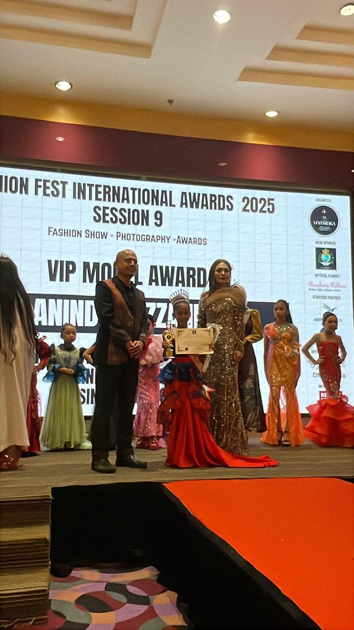 Dalam ajang tersebut, model asal Kota Duri, Anindya Azzahra, berhasil meraih penghargaan dari Mahardika Production dengan gelar Fashion Fest International 2025 S9 – Miss Grand and Glamorous Rising Star Model.