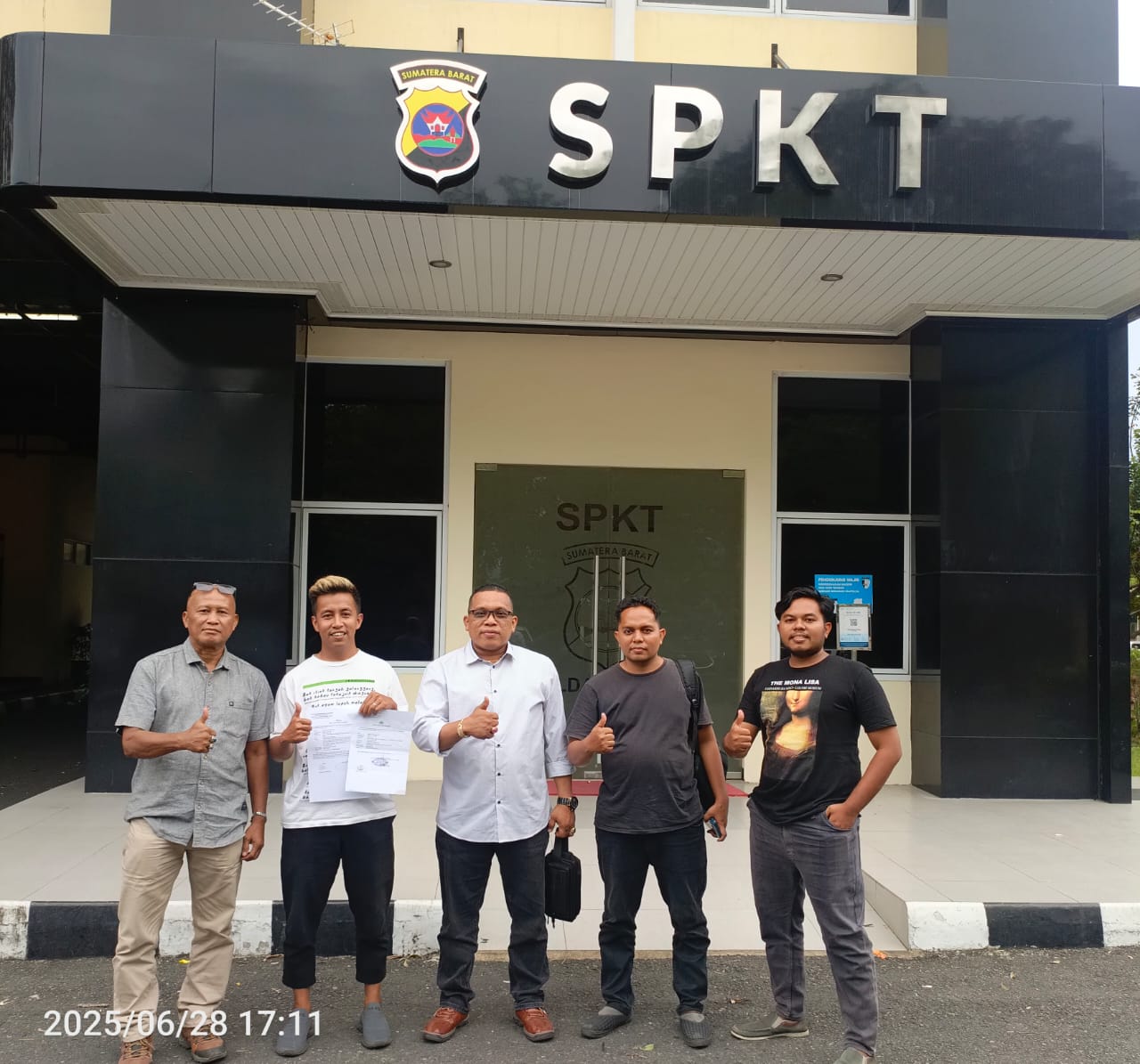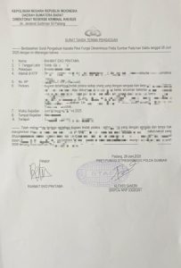 Rahmat yang didampingi Kuasa Hukumnya Ismail Novendra, S.H mendatangi SPKT Polda Sumbar pada Sabtu (28/6). Kepada petugas piket, Rahmat menceritakan kejadian dugaan pengancaman disertai pemerasan yang dialaminya pada Jumat (27/6) kemarin.