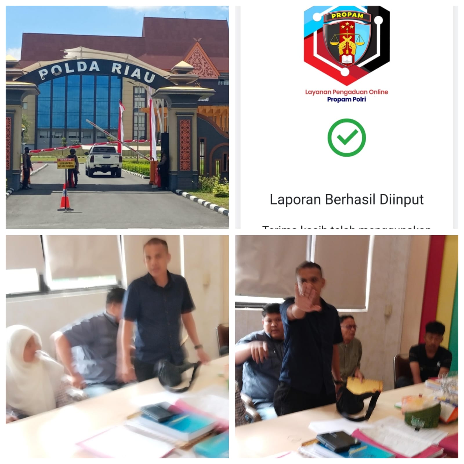 Merasa tidak mendapatkan keadilan, korban akhirnya melaporkan kejadian tersebut melalui layanan pengaduan online Propam Mabes Polri. Laporan tersebut telah diterima dan ditindaklanjuti dengan diterbitkannya surat perintah pemeriksaan (Sprin) oleh Paminal Polda Riau.