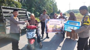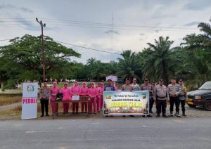 Kapolsek Rantau Kopar Iptu Riko Rizki Masri, S.H, M.H bersama Ketua Bhayangkari Peduli Ny. Shanty Riko dan jajaran Personel anggota Bhayangkari “Peduli Ramadhan” berkesempatan berbagi Takjil gratis sebanyak 100 paket Takjil untuk pengguna jalan raya.