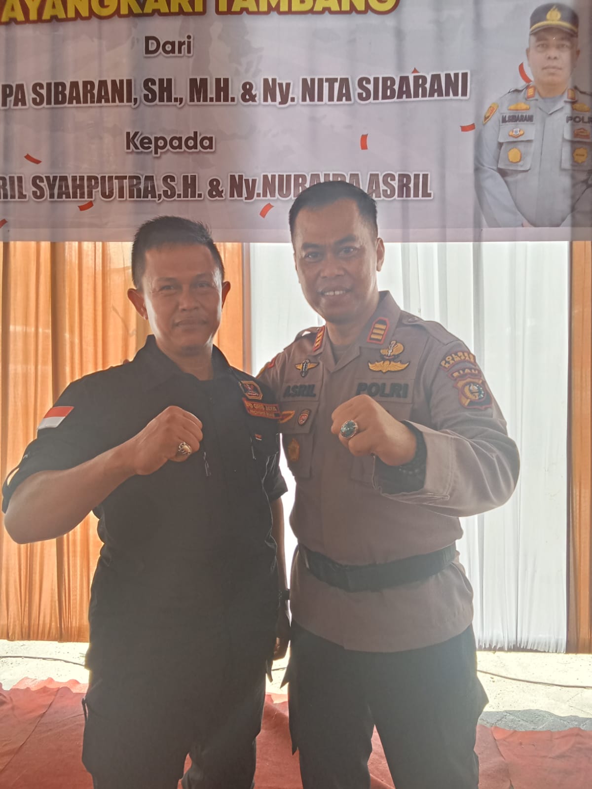 Matajagad – Kampar,Dalam rangka mempererat tali siraturahmi satgas GRIB Jaya Kampar turut Hadir Dalam Rangka kenal pamit,AKP Marupa Sibarani SH.,MH.dan Ny.nita Sibarani,kepada AKP Asril syaputra,s.H. dan ny.nuraida Asril.yang di laksanakan Senin,22/07/2024di halaman Polsek jln raja Bangkinang kecamatan tambang,